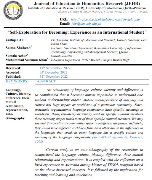 The current study is an auto-ethnography of the researcher to comprehend the language, culture, identity, difference, mutual relationship, and representation. It is coupled with the reflection on a lived experience in Australia during the Master of TESOL program based on the above-discussed concepts. It is followed by the implication for teaching and learning and the conclusion.