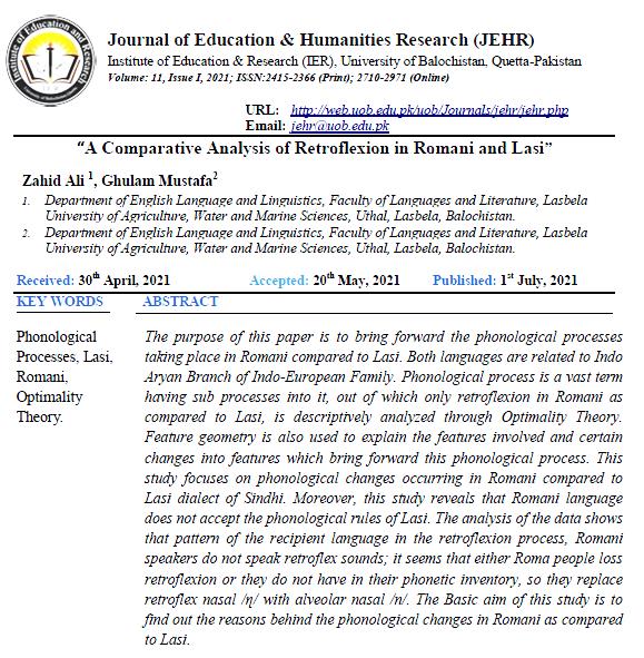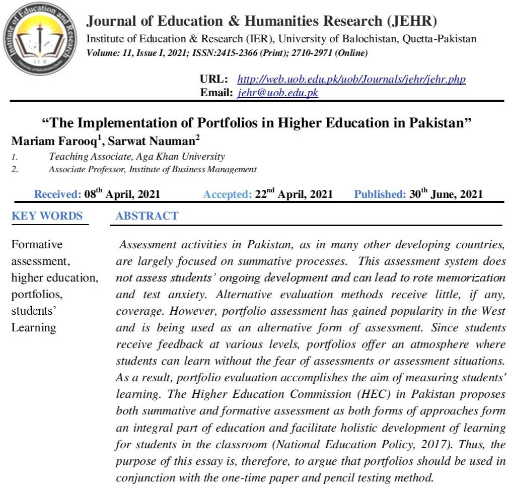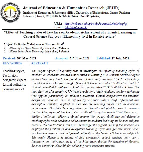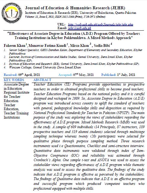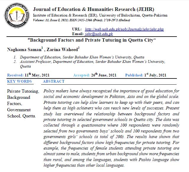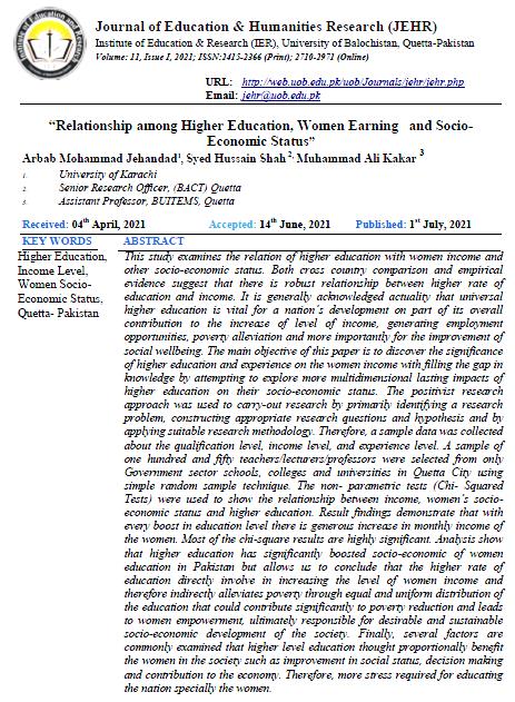 View Vol. 11 No. 1 (2021):  Journal of Education & Humanities Research (JEHR)