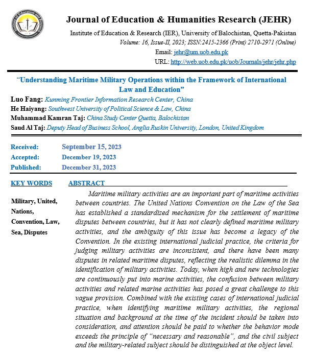 Understanding Maritime Military Operations within the Framework of International Law and Education