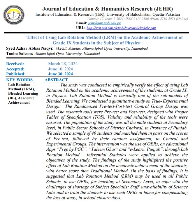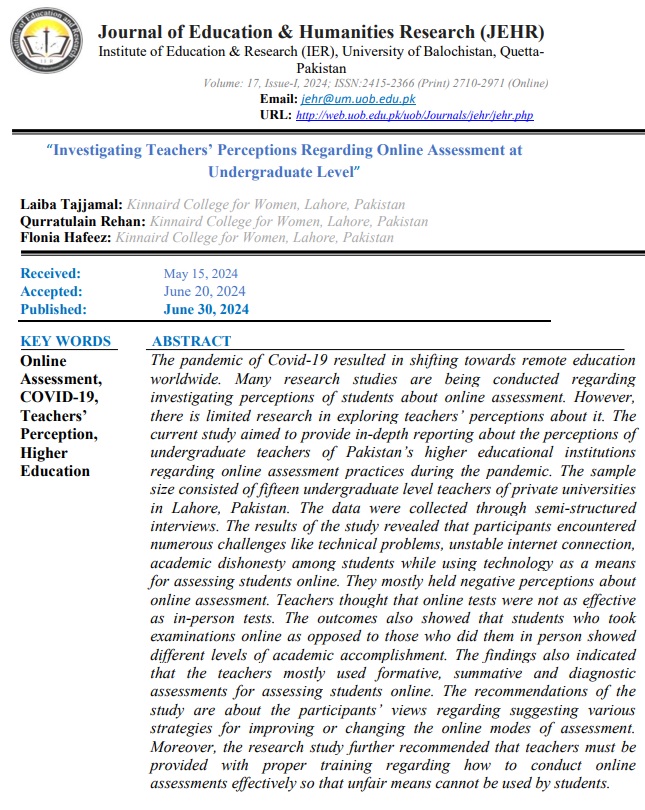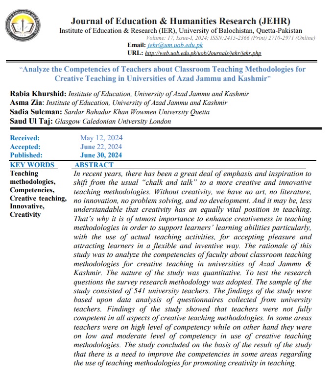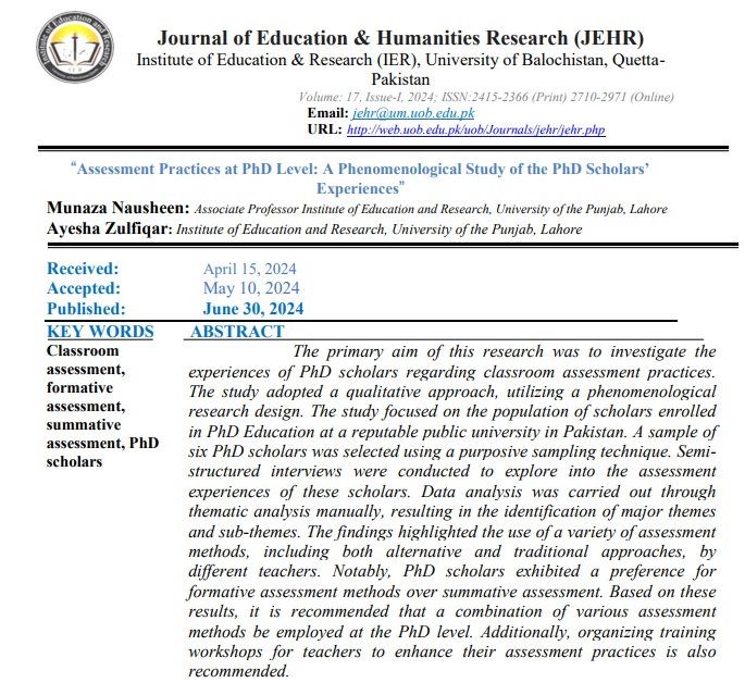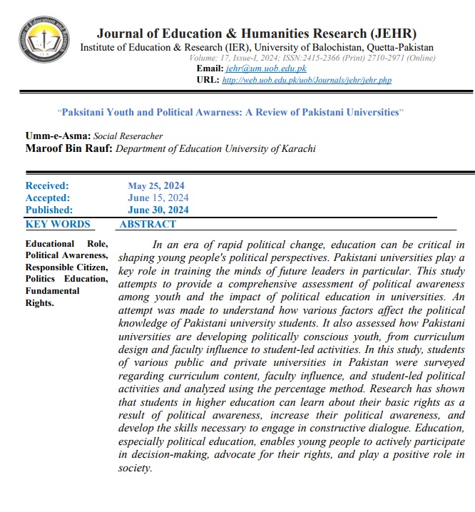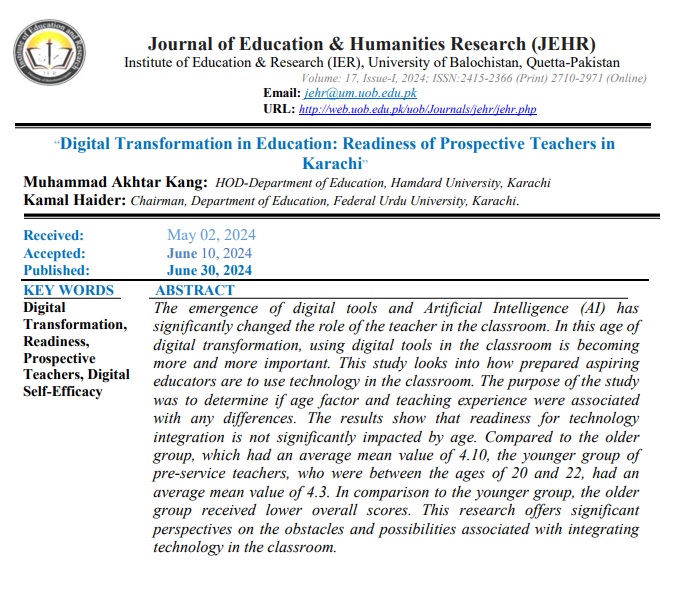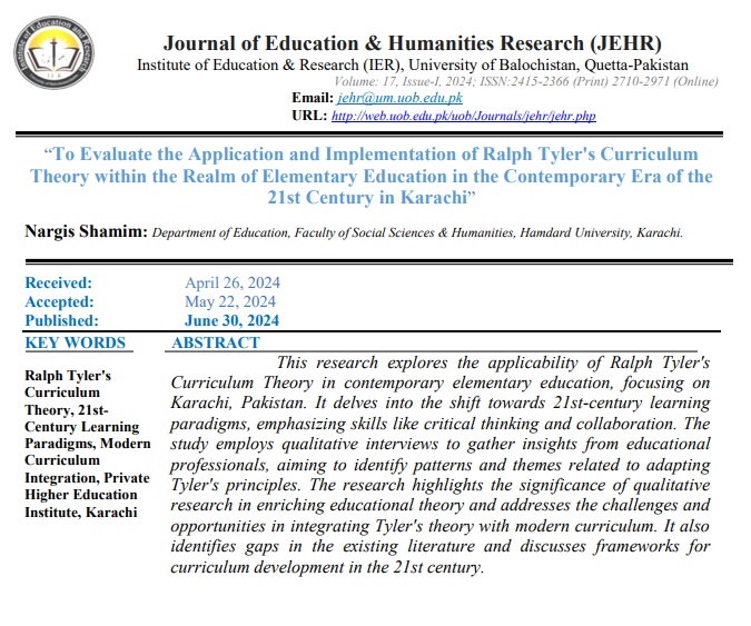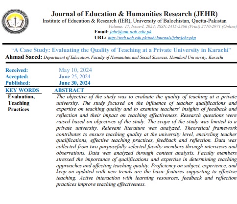 Vol. 17 No. 1 (2024): Journal of Education and Humanities Research (JEHR)