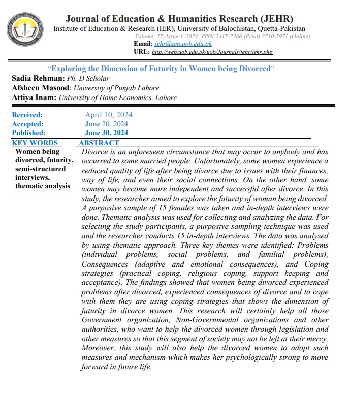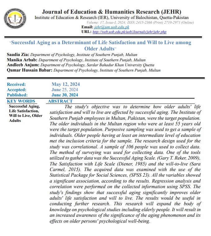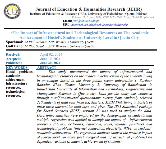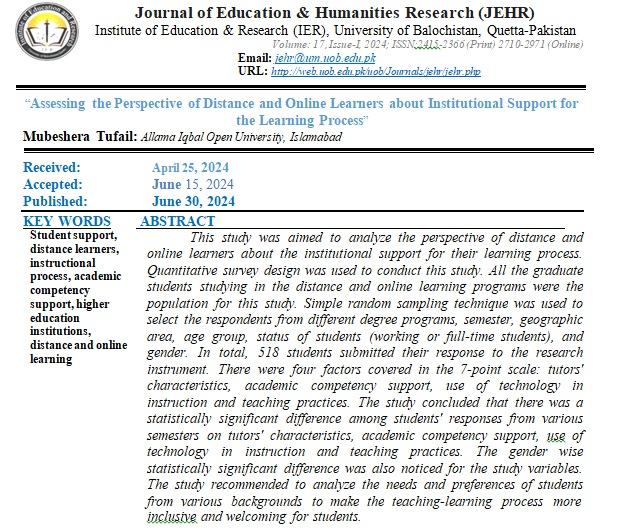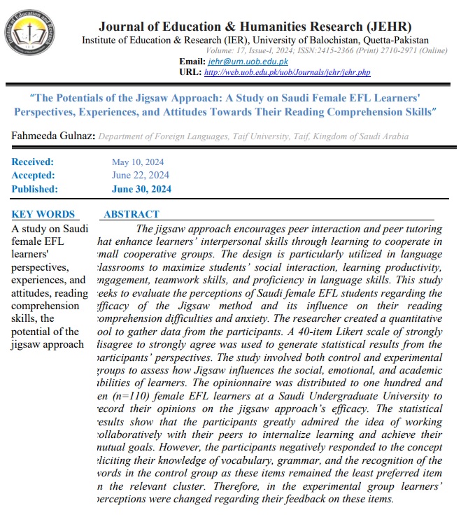 View Vol. 17 No. 1 (2024): Journal of Education and Humanities Research (JEHR)
