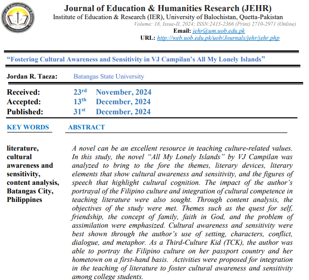 Fostering Cultural Awareness and Sensitivity in VJ Campilan’s All My Lonely Islands